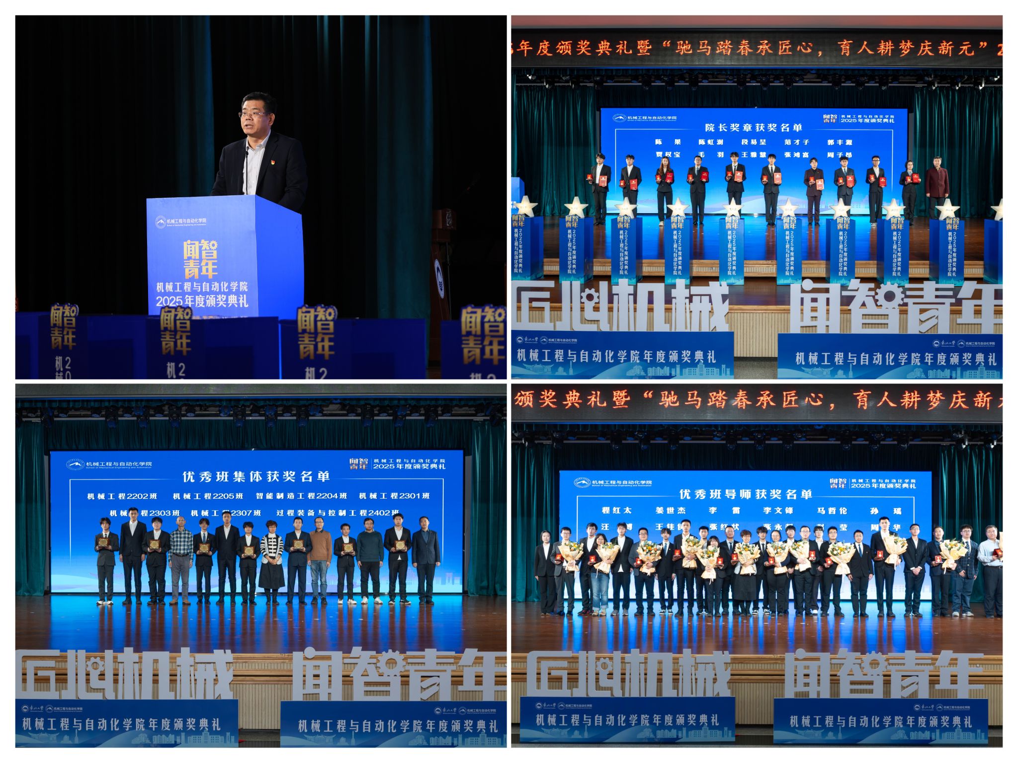 学院党委郝建山正在致辞中系统回首了一年来学院取得的主要成绩。学院积极办事国度计谋,投身深度金属矿智能开采纳配备全国沉点尝试室扶植,并正在环节科研范畴实现标记性冲破,获得国度严沉专项支撑。同时,学院成功引进增材取激光制制范畴领军团队,稳步推进学校新增学位点扶植,正在人才培育方面,学院学子表示凸起,研究生学术丰盛,正在“挑和杯”“中国国际大学生立异大赛”等多项赛事中斩获国度级项,结业生就业率持续连结高位,展示了全面成长的优良素养。郝建山阐释了“闻智青年”品牌的育人内涵,将小我成长融入“制制强国”计谋,过硬本事,怯于立异创制,勤奋成为担任平易近族回复大任的时代新人。副院长罗忠表扬决定。颁环节分三轮顺次进行。起首颁布的是“院长章”,刘云飞为毛羽等10名正在专业进修、科技立异、社会实践等方面表示杰出的学生颁布章。随后颁布“优良班集体”项,班导师代表为7个正在班风、学风及凝结力扶植中成效显著的班级颁。最初,仪式聚焦育人一线论理学生代表向获评“优良班导师”的教员们献上鲜花取荣誉证书,表达诚挚感谢感动。“院长章”获得者代表毛羽连系科研竞赛取意愿办事履历,讲述了“道阻且长,行则将至”的成长;“优良班集体”获代表豆煜轩分享了班级凝心聚力、共建优秀学风的活泼经验。正在“闻智匠心 共话青蓝”出格环节,优良班导师马哲伦取所带班级学生代表刘定佳同台交换,从分歧视角展示了师生间思惟引领、学业互帮、讲授相长的温情互动,彰显了育人一线的深挚交谊取结实成效。据悉,“闻智青年”是机械工程取从动化学院出力打制的文化育人品牌。本次颁仪式既是年度的集中展现,也是典型树立、激励朝上进步的主要平台,旨正在指导全体学生以先辈为楷模,坚想、夯实专业根本、锻制立异能力,勤奋成长为具有家国情怀、全球视野取创制活力的杰出工程人才,为学校“双一流”扶植和高质量成长注入芳华力量。